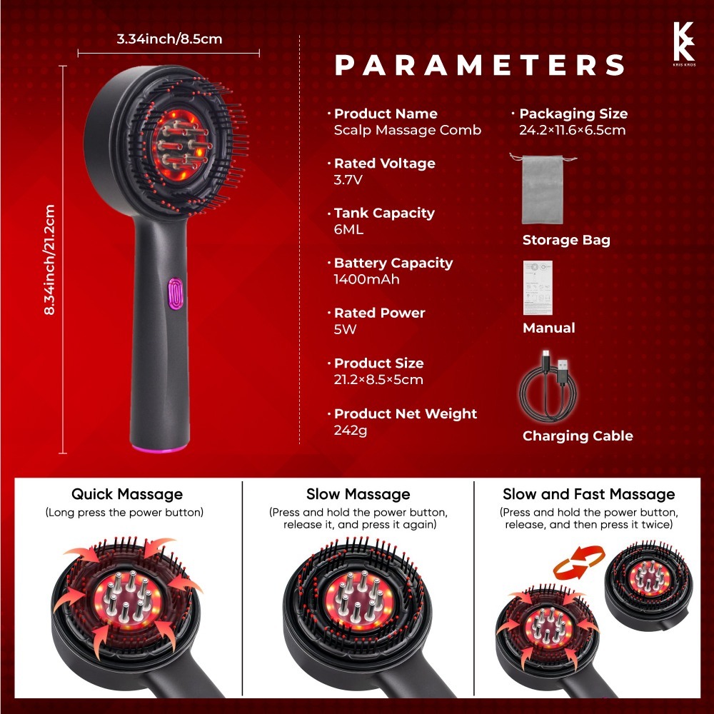 Experience the future of scalp care with the Kris Kros 3-in-1 Electric Scalp Massage Comb – a revolutionary tool that combines red light therapy, deep scalp massage, and oil application in one smart device. Whether you’re battling hair fall, dandruff, or just want to relax after a long day, this powerful comb promotes healthy hair growth while easing stress and improving sleep. Trusted by thousands, it’s your all-in-one solution for a stronger scalp and shinier hair.